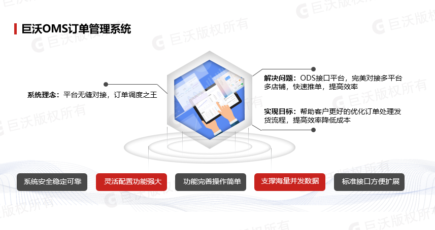 多年合作,巨沃一直以成熟穩(wěn)定的產(chǎn)品、優(yōu)質(zhì)的服務(wù)持續(xù)支持遠(yuǎn)夢的業(yè)務(wù)發(fā)展,基于對巨沃的信任與支持,遠(yuǎn)夢引入巨沃OMS訂單管理系統(tǒng)提升物流供應(yīng)鏈管理水平。項目中,巨沃OMS訂單管理系統(tǒng)打通線上各大電商平臺數(shù)據(jù),解決舊系統(tǒng)卡頓,線上訂單、商品、庫存同步等訂單管理問題,實現(xiàn)訂單全鏈路管理,實時掌握訂單處理進度,實現(xiàn)高效穩(wěn)定的倉儲物流管理,提升客戶服務(wù)體驗。
