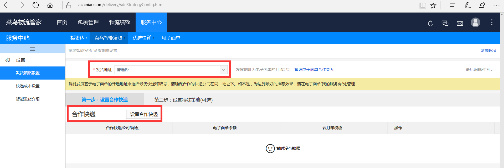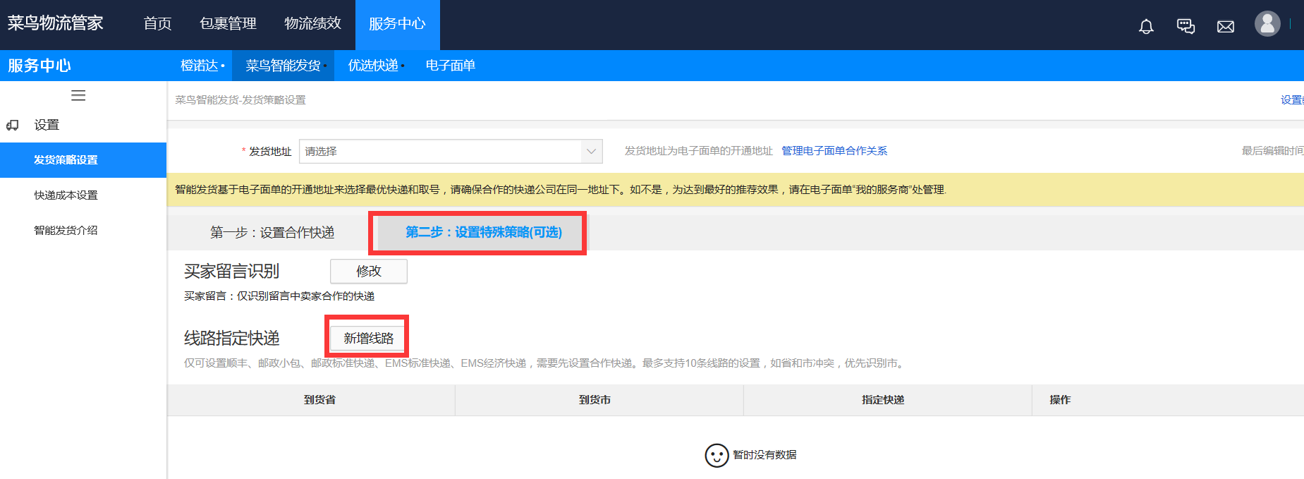 2、 配置菜鳥智能發(fā)貨策略: