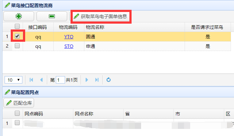 5. 勾選快遞編碼,點擊獲取,地址會出現(xiàn)申請的地址信息