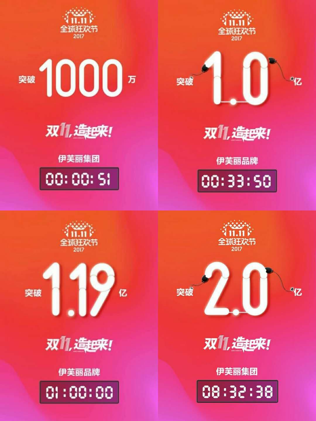 伊芙麗:51秒突破1000萬,33分50秒破億,領(lǐng)跑中國女裝品牌TOP4。