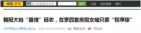 更有報(bào)道北京朝陽(yáng)區(qū)大媽招女婿要求只要“程序猿”