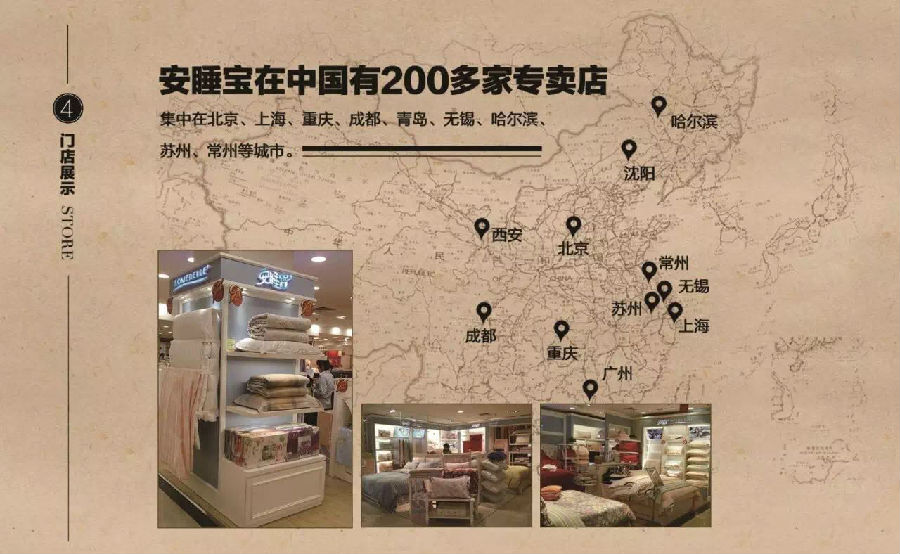 安睡寶,自1993年由美國百年企業(yè)杜邦公司引入中國,憑借其纖維科技研發(fā)優(yōu)勢和不斷推出的革命性科技時(shí)尚產(chǎn)品,迅速成為中國家紡行業(yè)的芯類專家和科技睡眠領(lǐng)導(dǎo)者。安睡寶是床上用品領(lǐng)域進(jìn)入中國市場的第一個(gè)國際品牌,是中國第一條科技纖維(中空/四孔/七孔)芯類打造者。上世紀(jì)末傳統(tǒng)的棉被受到化纖芯類產(chǎn)品的沖擊,并逐漸成為市場的主流。