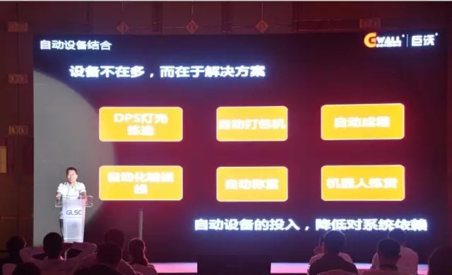 以百草味為例,部分產(chǎn)品使用機(jī)器人揀貨,上下兩層的自動化設(shè)備流水線、三層的耗材輸送線,自動稱重,自動打包機(jī)(自動包裝、打印名單、貼標(biāo)),自動成箱設(shè)備;在現(xiàn)場自動化程度非常高,可以看到非常先進(jìn)的“工廠式倉庫”;這兩天在會議上看到很多自動化的設(shè)備都已經(jīng)在使用,這些可以進(jìn)行很好的揉合。