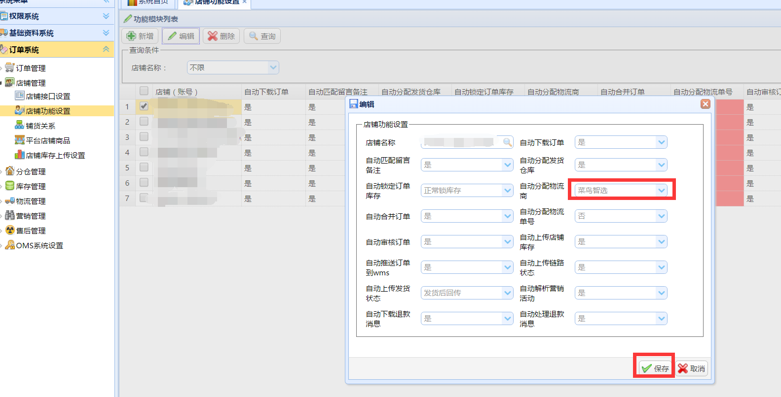 進入訂單系統(tǒng)-店鋪管理-店鋪功能設(shè)置,選擇菜鳥智選保存,即可