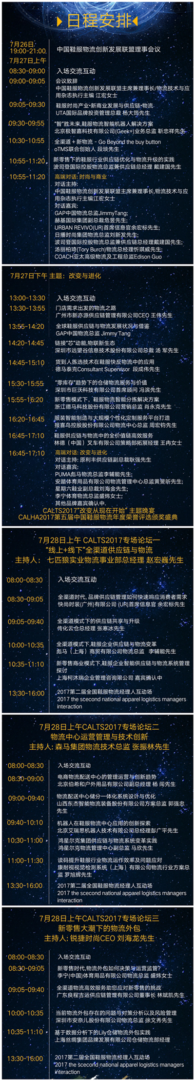 7月26日-27日,備受矚目的 CALTS2017第九屆中國鞋服行業(yè)供應(yīng)鏈與物流技術(shù)研討會暨第二屆全國鞋服物流經(jīng)理人互動(dòng)場將在杭州隆重舉行。本屆大會的主題是:為時(shí)尚而改變,為商業(yè)而進(jìn)化。